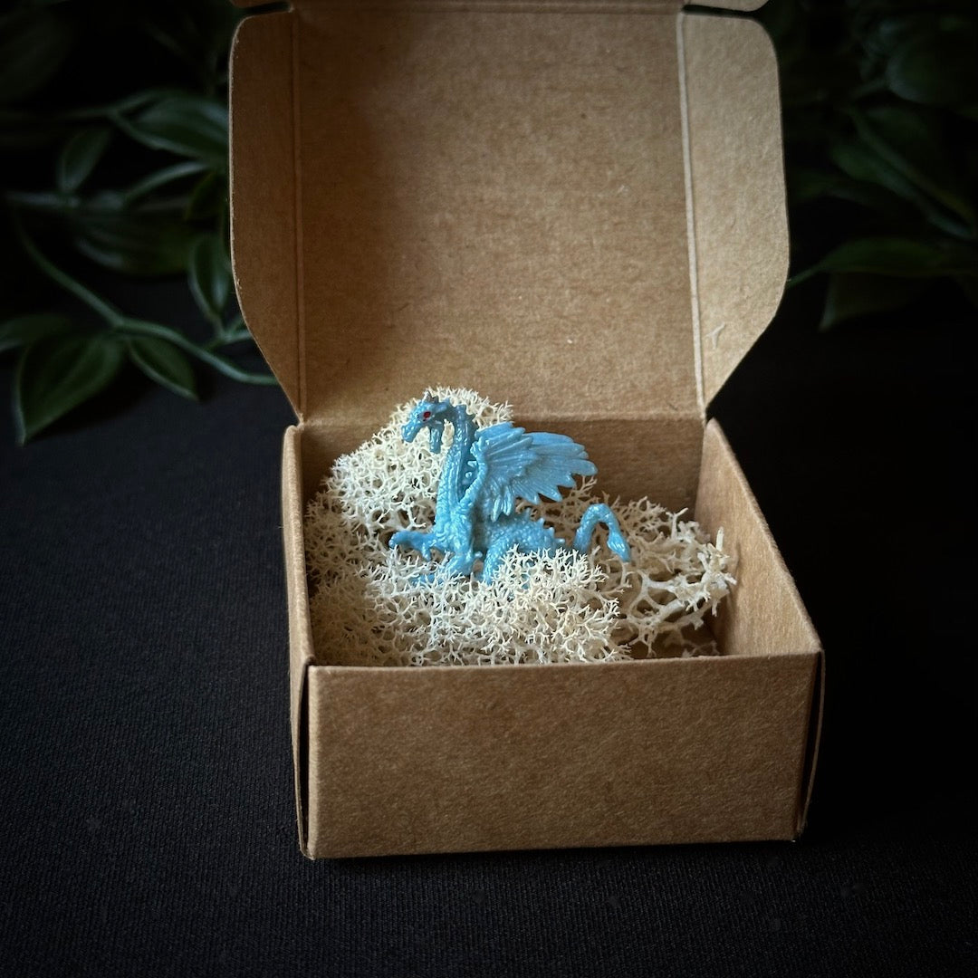 You open a box and inside you find a minuscule ice dragon resting on a bed of frosty moss.
