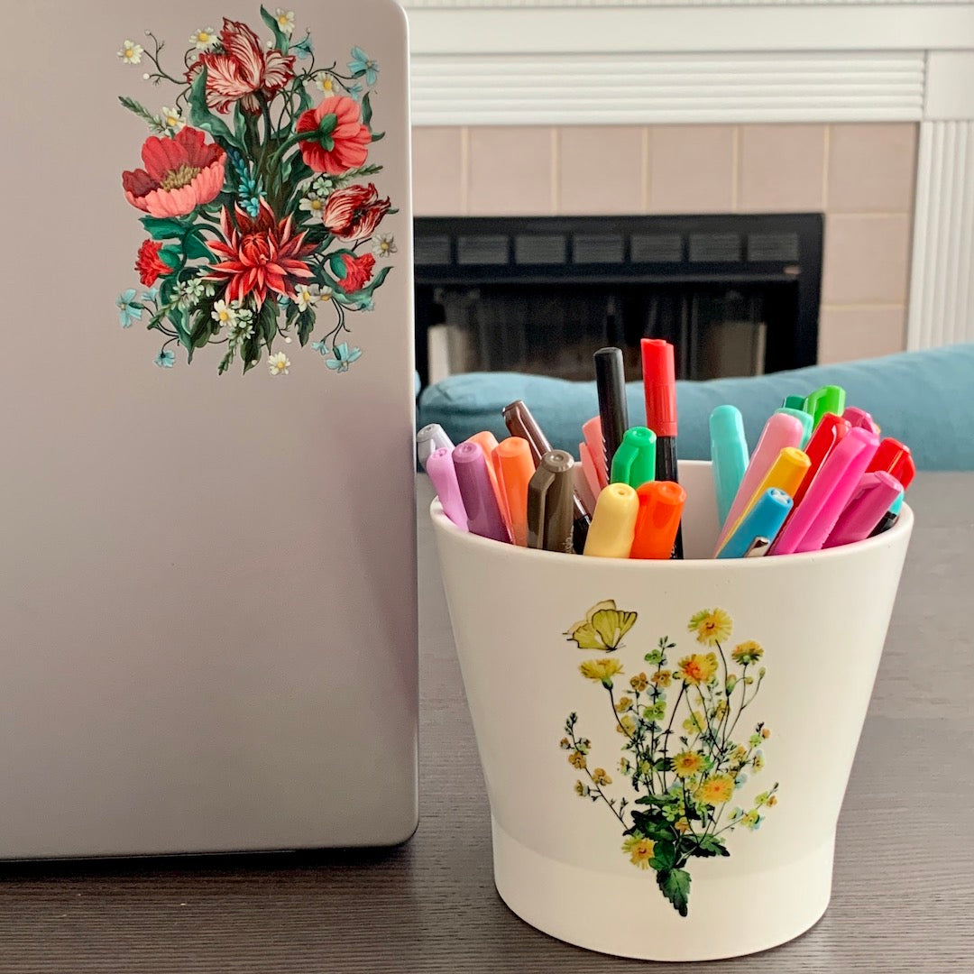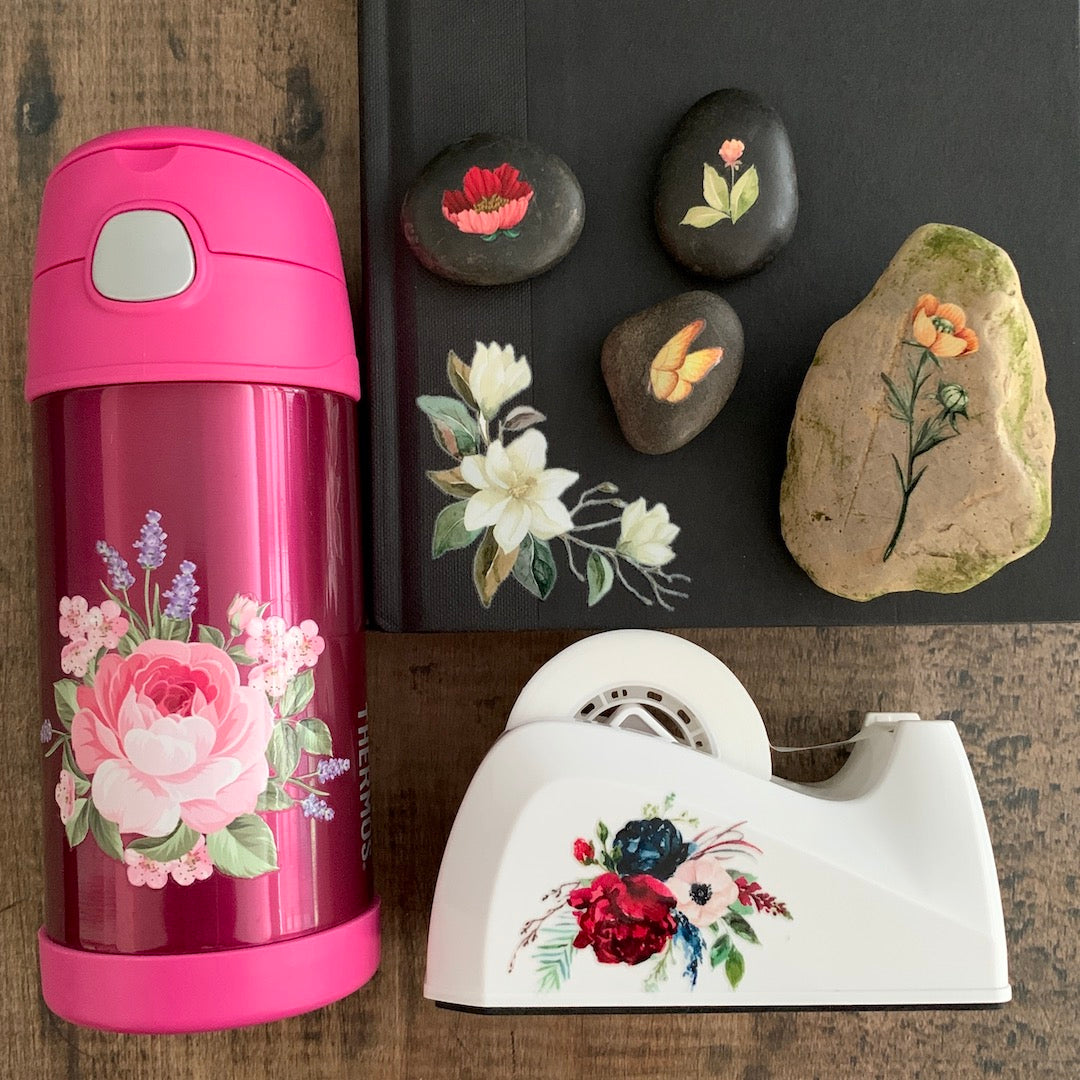 Transform your own home into an enchanting Summer Cottage with this collection of floral transfers. Your easy-to-use decals can be applied to almost anything: stone, glass, metal, plastic, fabric, and ceramic. Remodel your journals, mirrors, switch plates, furniture, or even your entire bathroom. You'll receive three sheets of transfers. Designs and sizes of transfers vary.