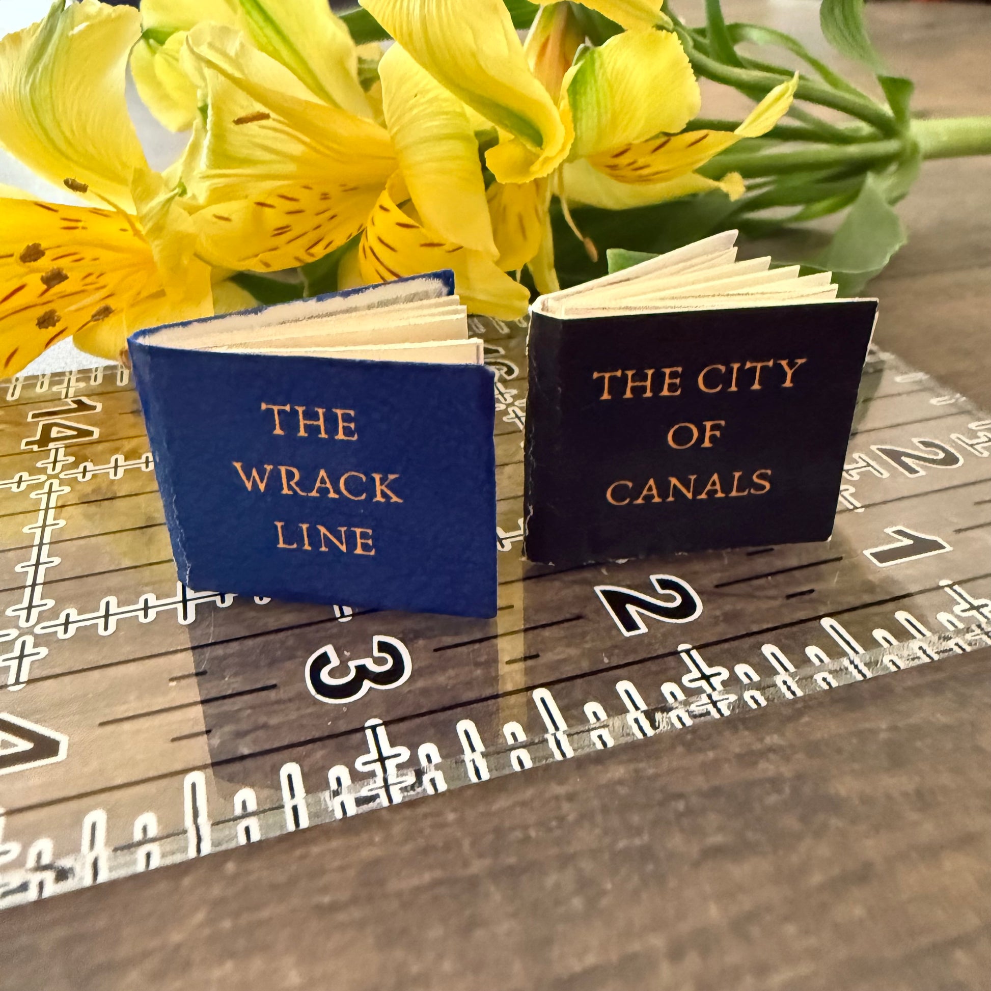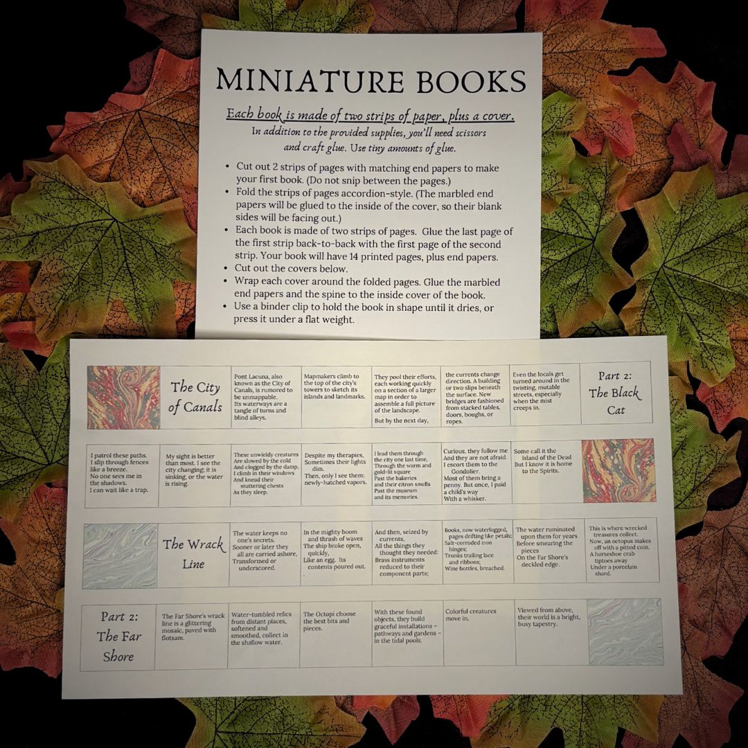 You'll receive supplies for two miniature books (including covers and pages with readable words) plus instructions. You'll need scissors and craft glue to assemble each one. The finished books measure about an inch in height, the perfect size for a 1/12 scale dollhouse or a miniature curiosity cupboard.