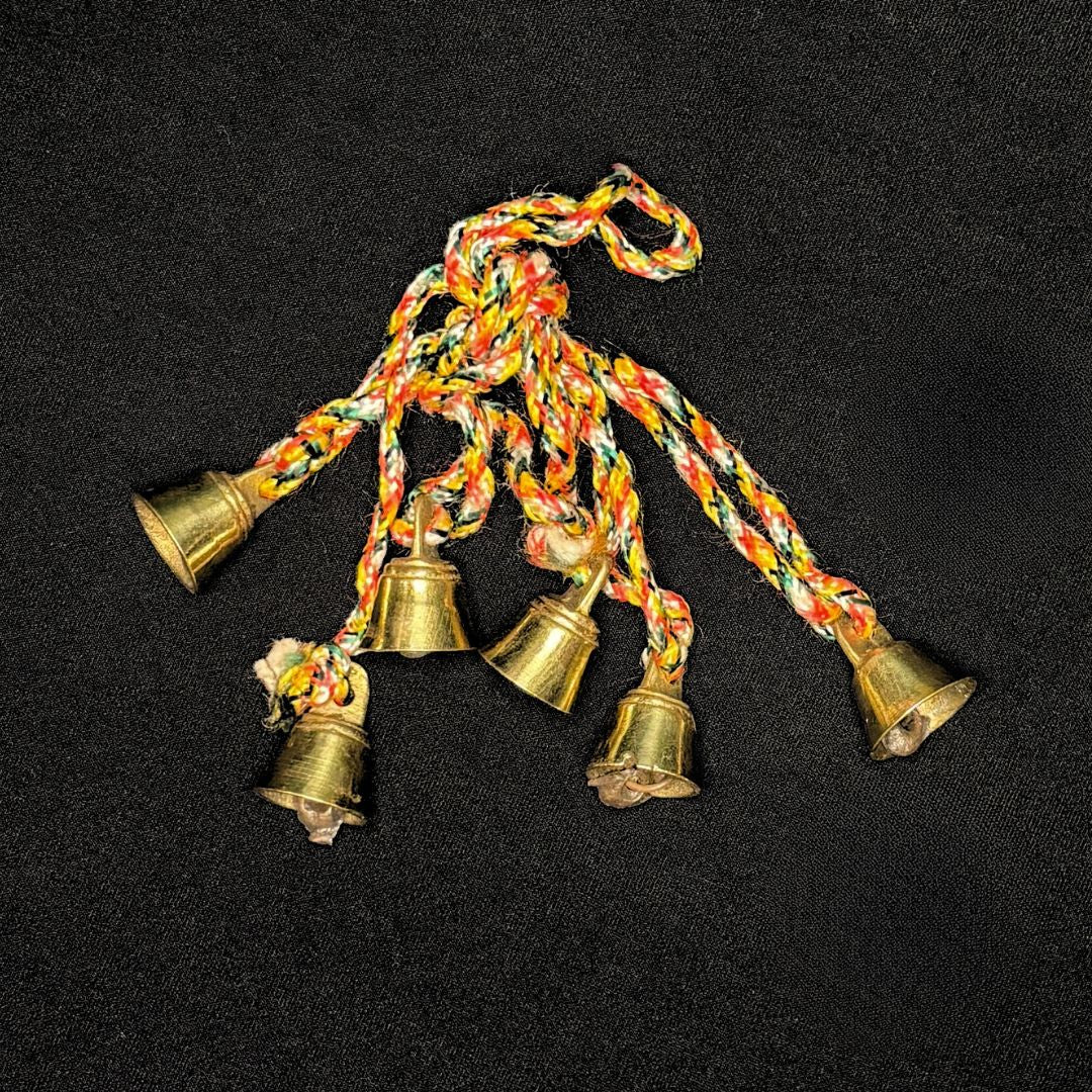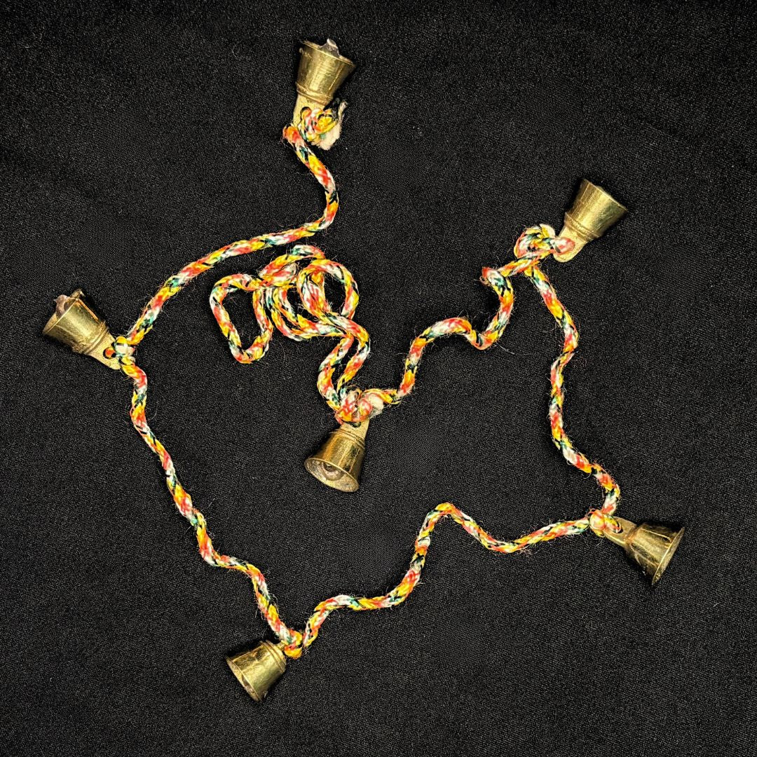 You will receive a strand of approximately 6 bells, measuring about 28 inches in length. Your handcrafted brass bells were created by a fair-trade artisan group in India. The size and shape of bells vary.