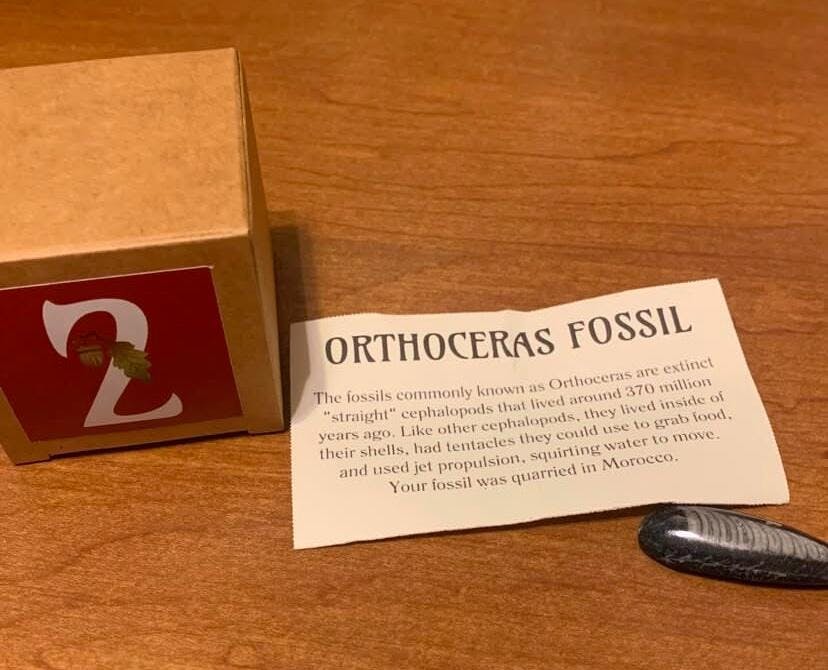 Here's a glimpse of one of your twelve gifts: an intriguing orthoceras fossil.