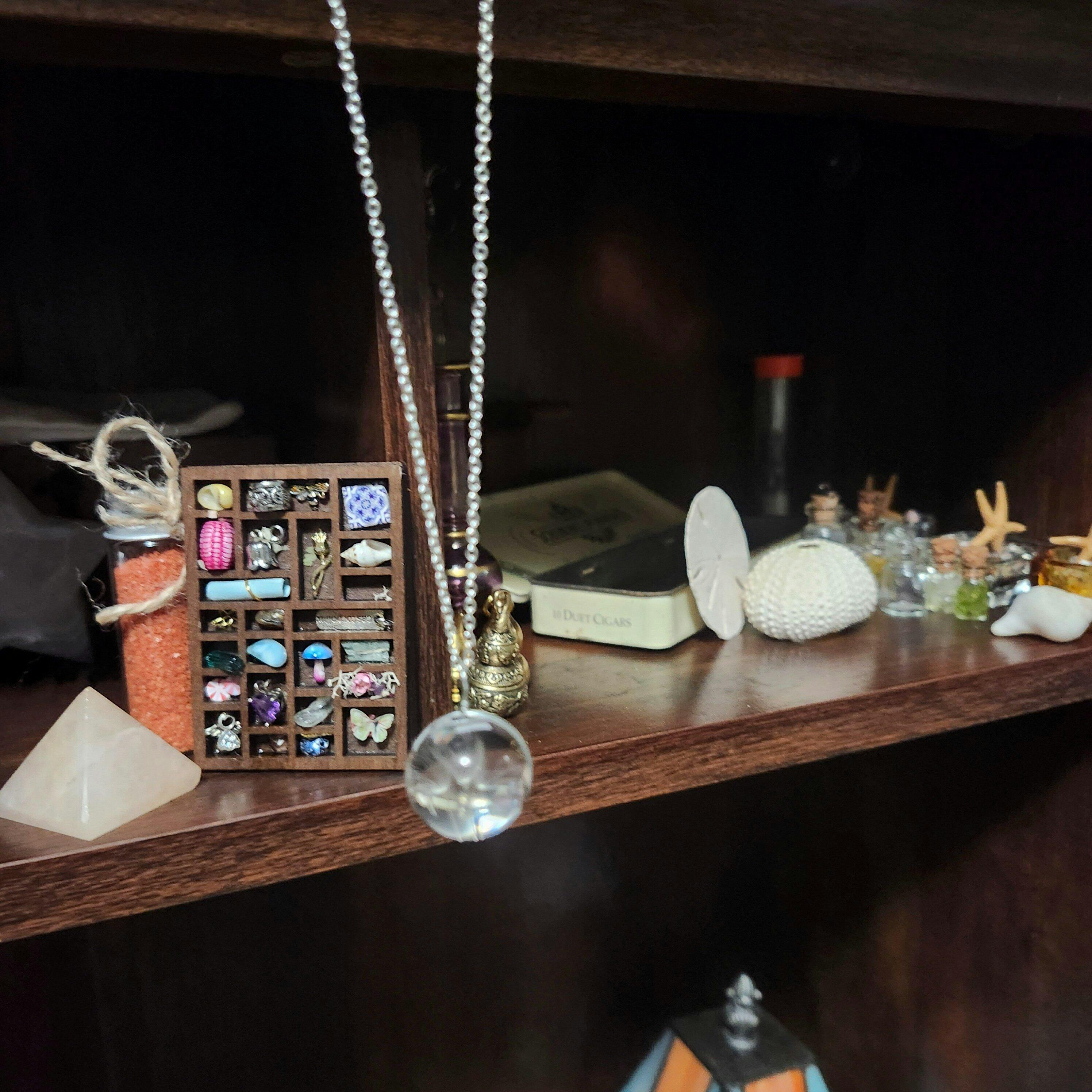 You marvel at this unusual pendant as the glass catches the sunlight. Eternally suspended in a globe of clear glass, the dandelion seed inside still seems to float. Your charm has been quickened at a crossroads.