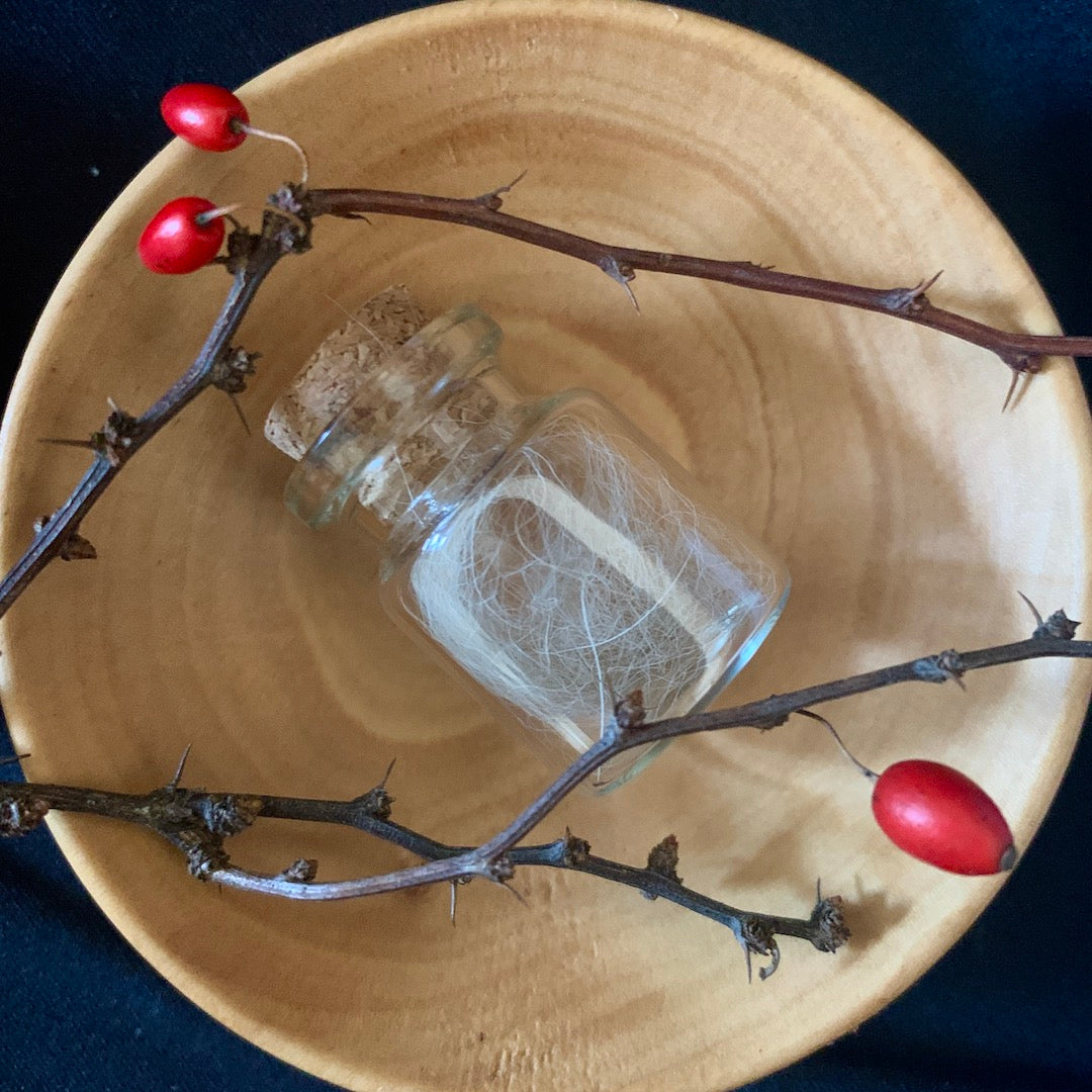 The Seer gives you a small tuft of her own warm fur in a cork-topped vial. It reinforces your connection with the Wolves. She explains how to use it to send her a message.